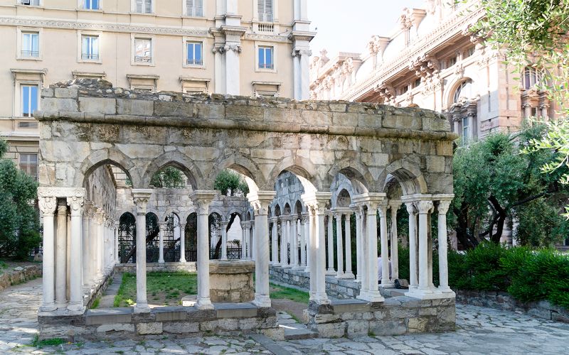 Adjacent à la Maison de Christophe Colomb, le cloître de Sant’Andrea constitue un témoignage religieux du Moyen Âge à Gênes. Ses galeries en arcades, datant du XIIe siècle, offrent un havre de tranquillité au cœur de la ville. Autrefois rattaché à un monastère bénédictin, ce cloître conserve encore d’élégants chapiteaux sculptés et des colonnes de marbre.