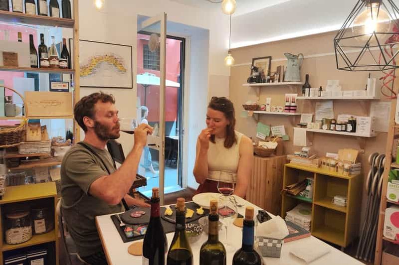 Dégustez 5 vins liguriens dans une bottega historique près de la maison de Christophe Colomb, accompagnés de pesto, de f...