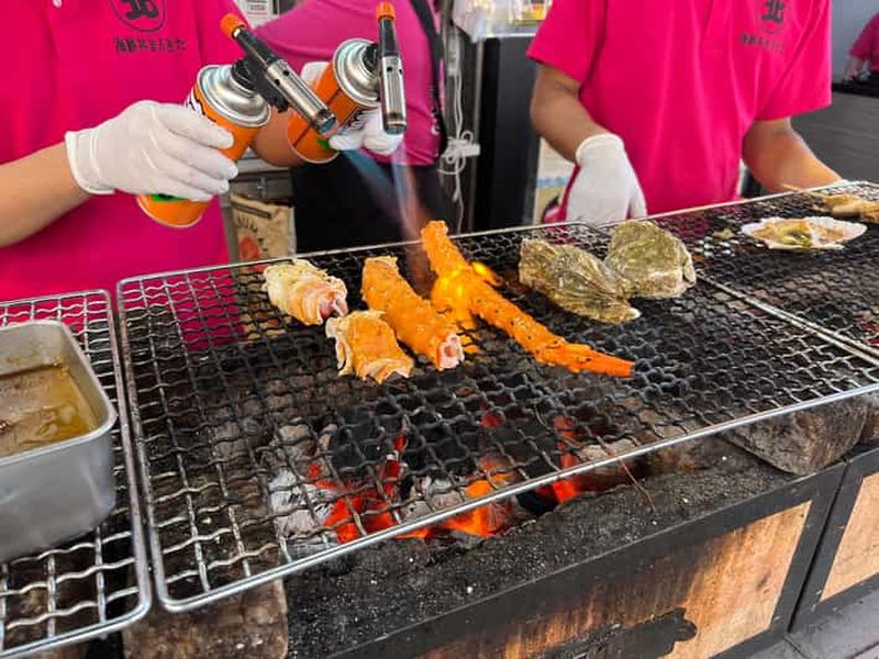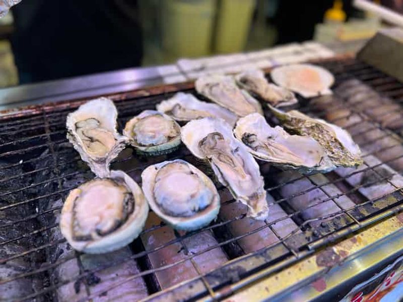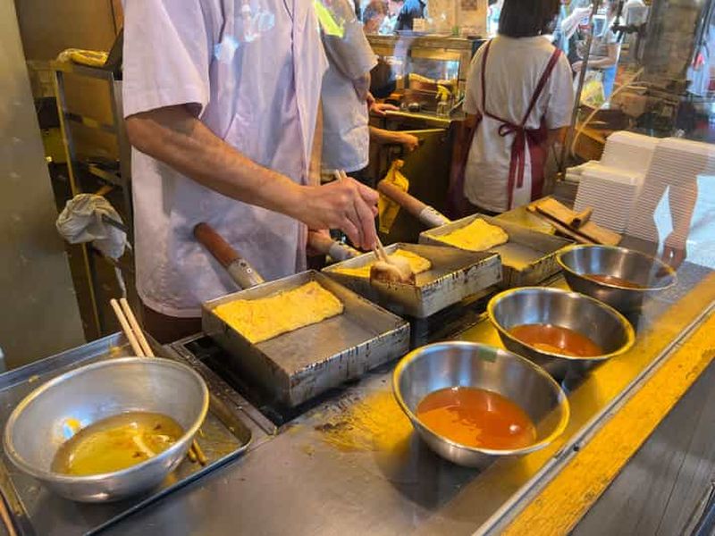 Outre les sushis et les poissons, Tsukiji est le terrain de jeu idéal pour goûter à d’autres incontournables de la gastronomie nippone : omelette sucrée salée servie sur un bâtonnet, huîtres grillées, oursins, croquettes de crabe et bien d’autres. Les portions sont souvent petites, parfaites pour picorer tout au long de votre visite. Une véritable aventure culinaire à ciel ouvert !