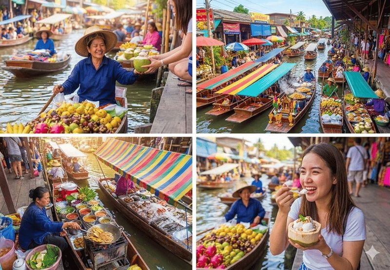 Datant du XIXe siècle, ces voies d’eau furent créées sous le règne du roi Rama IV pour faciliter le commerce et le transport. Aujourd’hui, elles accueillent d’innombrables barques colorées aux fruits tropicaux et spécialités thaïlandaises. Flâner le long des canaux vous permet d’observer la vie locale: vendeurs appelant les passants, maisons sur pilotis et sourires chaleureux. Un mélange d’histoire, de culture et de saveurs rend l’exploration vraiment captivante pour tous.