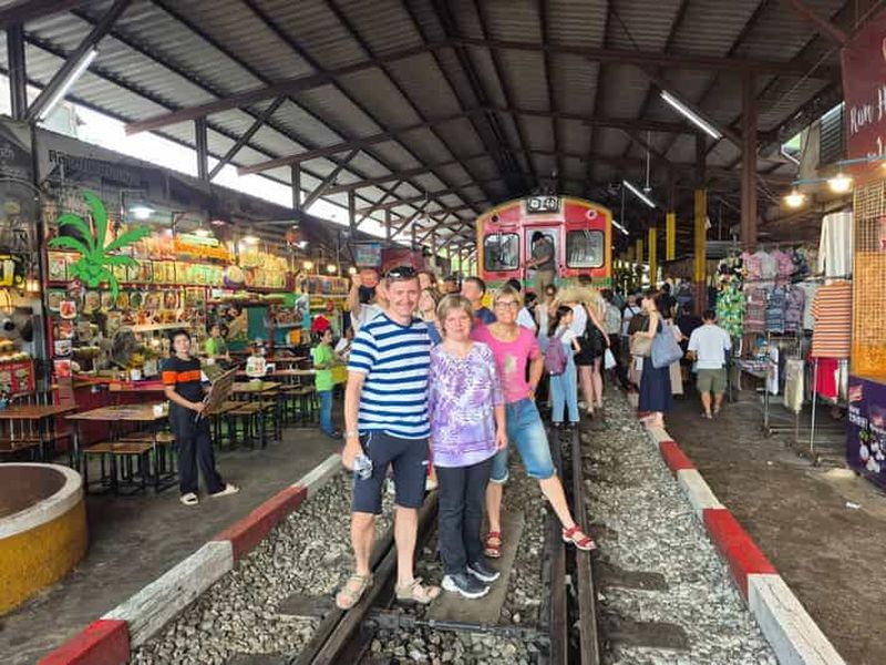 Découvrez le marché flottant et le marché de Maeklong lors de cette visite guidée d’une journée au départ de Bangkok. Ob...