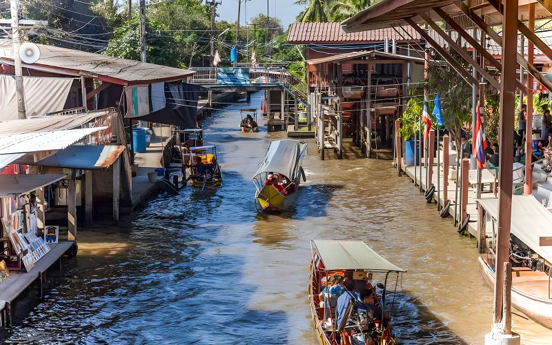 Datant du XIXe siècle, ces voies d’eau furent créées sous le règne du roi Rama IV pour faciliter le commerce et le transport. Aujourd’hui, elles accueillent d’innombrables barques colorées aux fruits tropicaux et spécialités thaïlandaises. Flâner le long des canaux vous permet d’observer la vie locale: vendeurs appelant les passants, maisons sur pilotis et sourires chaleureux. Un mélange d’histoire, de culture et de saveurs rend l’exploration vraiment captivante pour tous.
