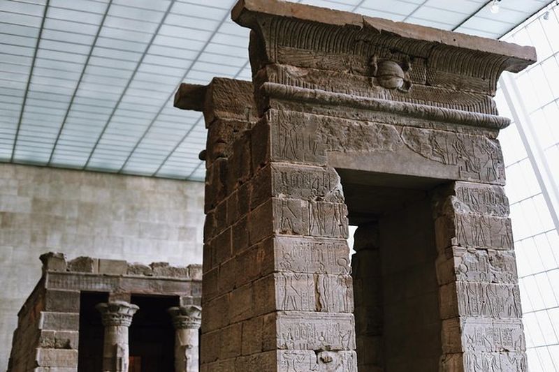 L’aile égyptienne abrite plus de 26 000 objets, couvrant 5 000 ans d’histoire de l’Égypte ancienne. Pièce maîtresse, le Temple de Dendur, construit vers 15 av. J.-C. sous l’empereur romain Auguste, a été offert aux États-Unis en 1965 pour préserver ce trésor historique. Fait de grès, il est exposé dans un espace baigné de lumière naturelle, offrant une immersion dans l’art et la religion égyptiens.