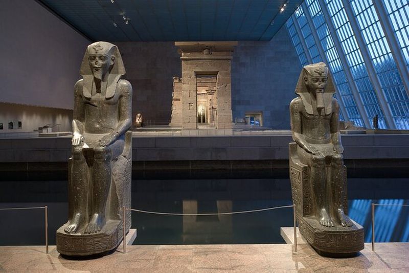 L’aile égyptienne abrite plus de 26 000 objets, couvrant 5 000 ans d’histoire de l’Égypte ancienne. Pièce maîtresse, le Temple de Dendur, construit vers 15 av. J.-C. sous l’empereur romain Auguste, a été offert aux États-Unis en 1965 pour préserver ce trésor historique. Fait de grès, il est exposé dans un espace baigné de lumière naturelle, offrant une immersion dans l’art et la religion égyptiens.