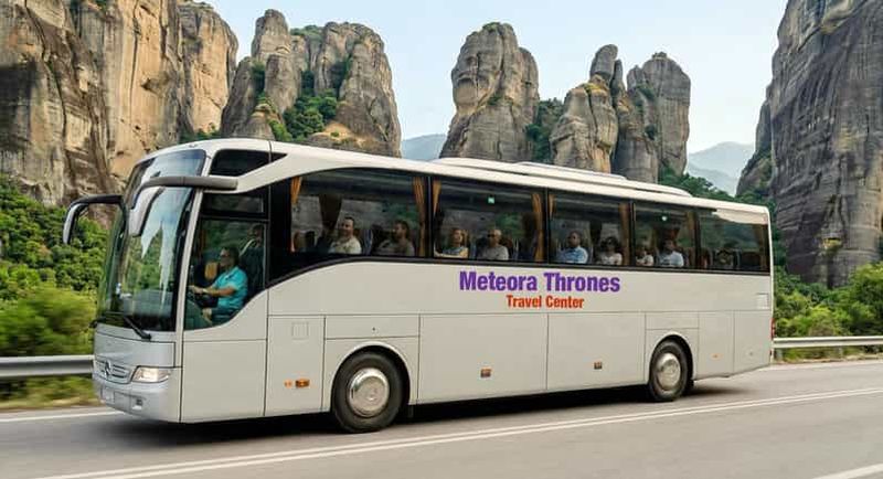 Choisissez cette option pour un transfert en bus confortable depuis Athènes. Visite en petit groupe des Météores avec un guide anglophone de la région. Le déjeuner n'est pas inclus, mais vous aurez du temps libre pour déjeuner à votre guise. Audioguide gratuit inclus.