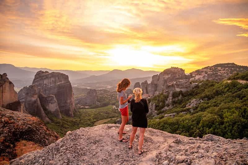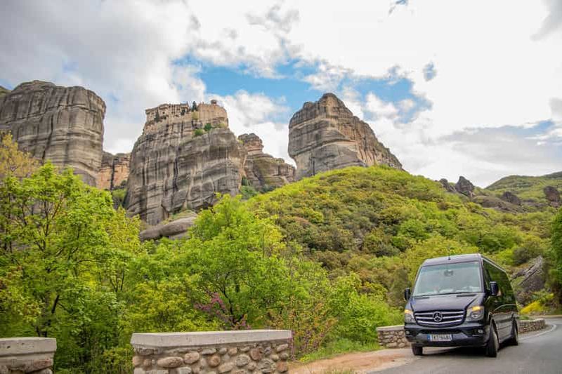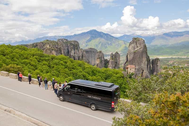 Profitez d'un transfert en bus sans tracas depuis Athènes et explorez les Météores en petit groupe avec un guide anglophone local. Un déjeuner grec traditionnel est inclus, avec un choix de 10 plats, y compris des options végétariennes. Un audioguide gratuit est également fourni.