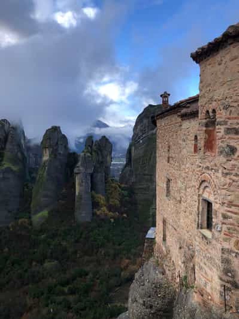 Datant du XVème siècle, le Monastère de la Sainte-Trinité offre l’une des vues les plus spectaculaires des Météores. Il figure parmi les plus difficiles d’accès, avec un sentier raide et plus de 140 marches. Vous pourrez y admirer une église ornée de fresques anciennes, ainsi qu’une iconostase particulièrement raffinée. Ce lieu, immortalisé dans le film “Rien que pour vos yeux”, demeure un symbole incontournable du paysage spirituel et culturel grec.