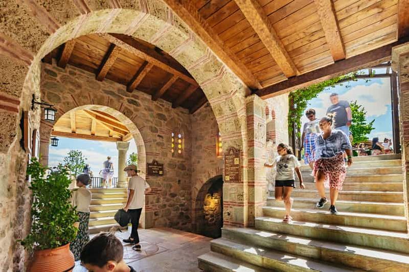 Choisissez cette option pour bénéficier d’un transfert confortable en bus depuis Athènes et explorer les Météores en compagnie d’un guide de la région anglophone. Comprend un déjeuner traditionnel grec avec 10 plats au choix, y compris des options végétariennes, ainsi qu’une application d’audioguide connectée.