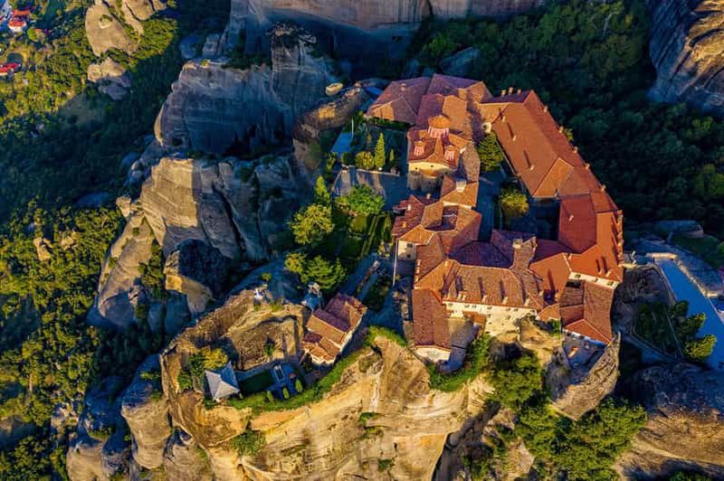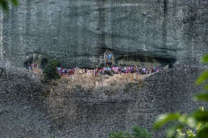 Datant du XVème siècle, le Monastère de la Sainte-Trinité offre l’une des vues les plus spectaculaires des Météores. Il figure parmi les plus difficiles d’accès, avec un sentier raide et plus de 140 marches. Vous pourrez y admirer une église ornée de fresques anciennes, ainsi qu’une iconostase particulièrement raffinée. Ce lieu, immortalisé dans le film “Rien que pour vos yeux”, demeure un symbole incontournable du paysage spirituel et culturel grec.