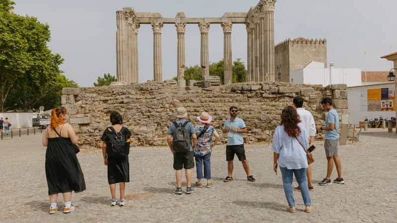 Participez à une visite d'une journée en français au départ de Lisbonne, avec prise en charge incluse. Découvrez le temple romain et la chapelle des ossements d'Évora, explorez le village médiéval de Monsaraz et profitez d'une dégustation de vin dans un domaine local de l'Alentejo.
