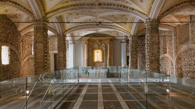 Participez à une visite d'une journée en français au départ de Lisbonne, avec transfert inclus. Visitez Évora et le village médiéval de Monsaraz. L'entrée à la Chapelle des Ossements et la dégustation de vin à Monsaraz ne sont pas incluses.