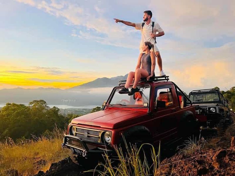 Cette option comprend une excursion en Jeep au lever du soleil, sans transfert à l'hôtel, et n'inclut pas le billet pour Kintamani (50 000 IDR/personne) ni le billet pour les sources chaudes.