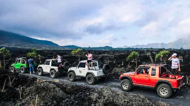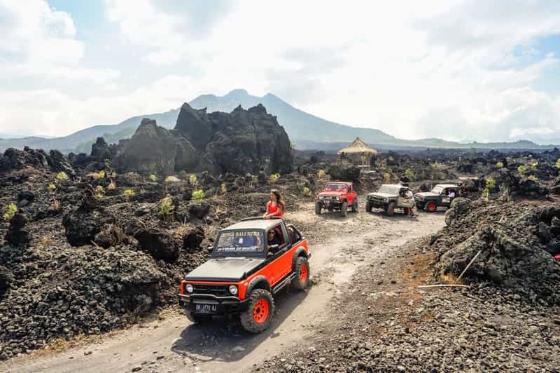 Explorez le mont Batur au lever du soleil lors d'une excursion privée en jeep. Parcourez des terrains volcaniques, profi...