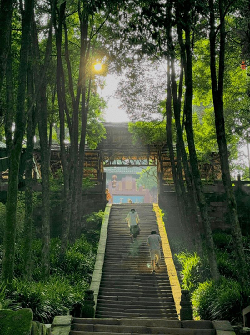 Le nom Qingcheng signifie littéralement “Ville Verte”. Ses sommets boisés dessinent une forme de rempart naturel recouvert d’une végétation luxuriante. En parcourant ses chemins, vous apprécierez la fraîcheur des forêts et l’abondance de plantes exotiques. Cette atmosphère sereine et mystique explique son statut de retraite privilégiée pour les ermites taoïstes.