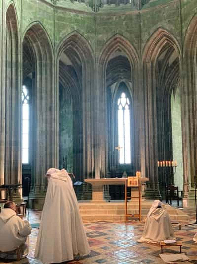 Cette option comprend une visite à pied du Mont-Saint-Michel avec un guide français et un billet d'entrée à l'abbaye. Explorez l'abbaye à votre rythme, sans guide.