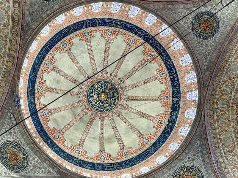 À l’intérieur, plus de 20 000 carreaux de faïence d’Iznik ornent les murs, reflétant la richesse du savoir-faire turc du XVIIe siècle. Ces céramiques, célèbres pour leurs nuances de bleu, de vert et de rouge, étaient sélectionnées pour symboliser la beauté céleste. Installées sous la supervision des maîtres céramistes, elles confèrent à l’espace un charme unique, sublimé par des motifs floraux. Observez de près chaque détail pour mieux comprendre cet art raffiné.
