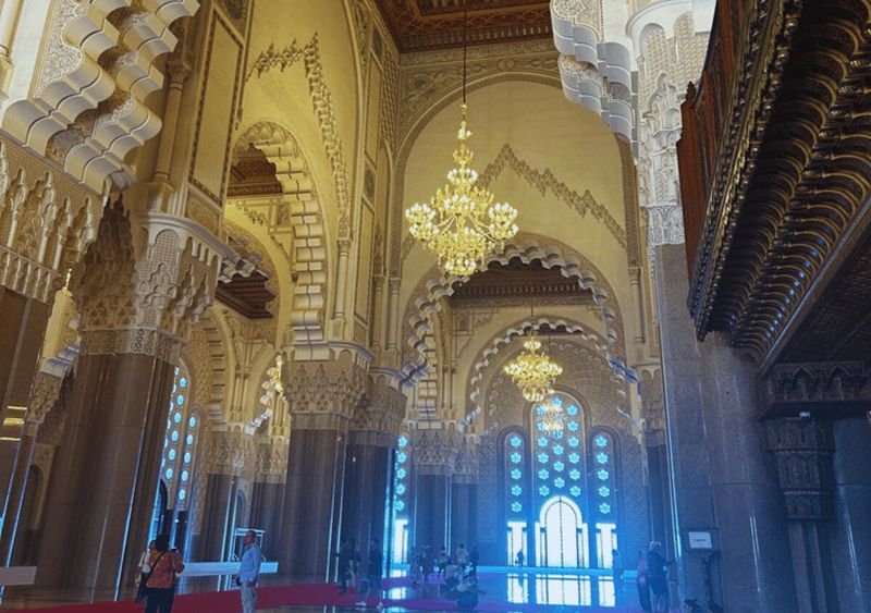 Située en bord de mer à Casablanca, la Mosquée Hassan II est un joyau du patrimoine marocain. Vivez une visite guidée inoubliable et découvrez ses merveilles architecturales uniques et fascinantes.