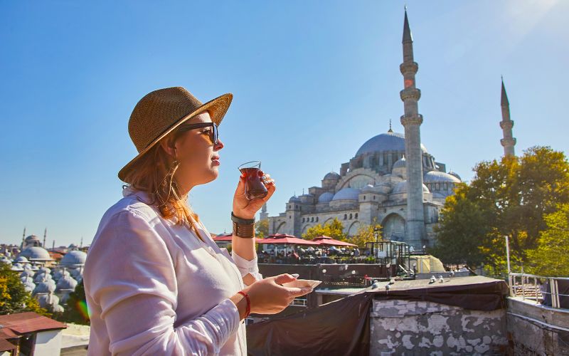 Cet ensemble paysager enveloppe la Mosquée Süleymaniye et offre un panorama exceptionnel sur la Corne d’Or. Les jardins, aménagés avec soin, permettent de se promener à l’ombre des arbres, admirant la silhouette d’Istanbul. La terrasse, conçue pour contempler le Bosphore et les collines environnantes, constitue un lieu de repos au cœur de la cité. Aux heures dorées du coucher de soleil, vous profiterez d’une atmosphère paisible rehaussée d’une vue imprenable.