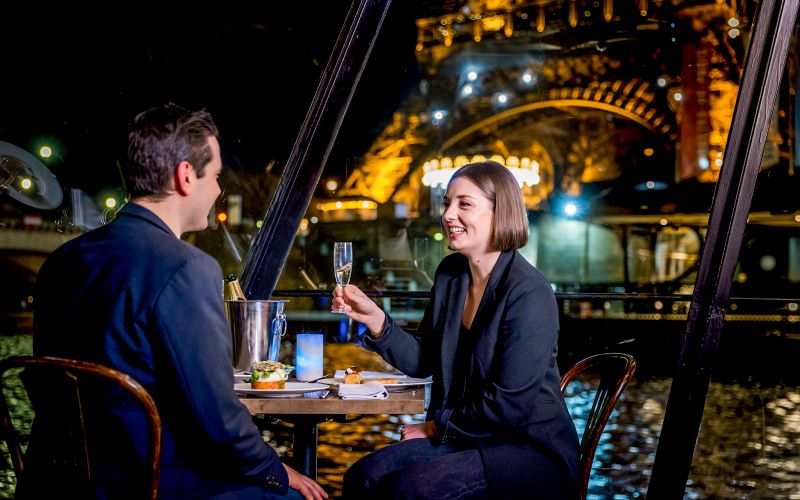 - **Bénéficiez d'une coupe de champagne à siroter au spectacle du Moulin Rouge, d'un dîner-croisière d'1h15 à bord du Paris Seine Restaurant et d'un accès réservé au 2ème étage de la Tour Eiffel.** - Dépose à l'Opéra, à l'Arc de Triomphe/Champs Elysées, à Montparnasse et à Bastille, dans le centre de Paris, après le spectacle