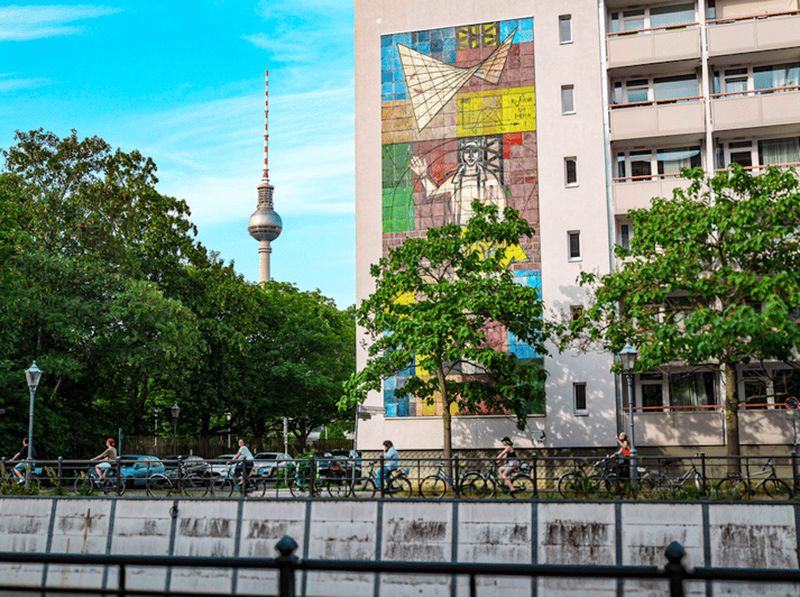 Pour visiter le Mur de Berlin, vous pouvez vous rendre à l’un de ses segments les plus populaires, l’East Side Gallery. Située à environ 3 km à l’est de l’Alexanderplatz, cette portion est facilement accessible en transports en commun. Prenez la ligne de S-Bahn jusqu’à la station Ostbahnhof, puis marchez environ 10 minutes vers l’est. Si vous visitez la Porte de Brandebourg, la galerie est à environ 4,5 km à vélo. Profitez de cette balade pour découvrir des quartiers historiques tels que Friedrichshain et Kreuzberg, riche en art urbain et culture alternative.