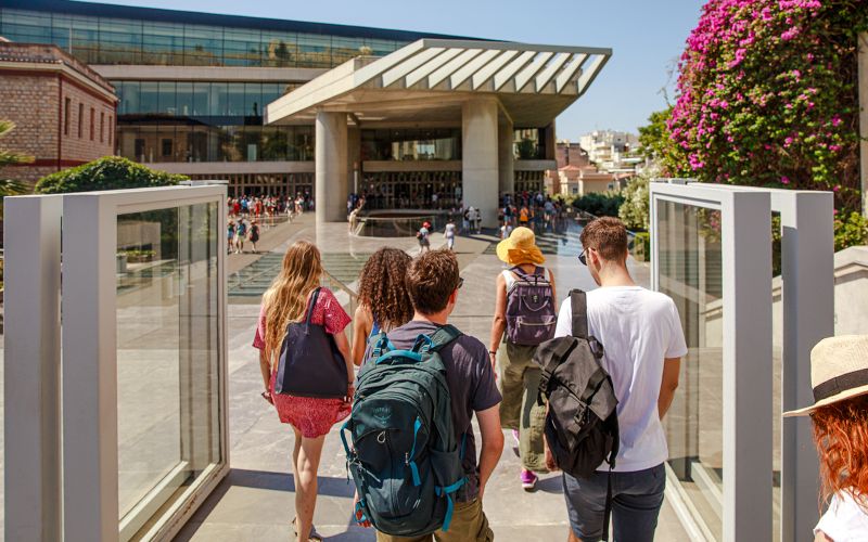 Le Musée de l’Acropole est idéalement situé au pied de l’Acropole, au cœur d’Athènes. À seulement 5 minutes à pied de la station de métro Acropoli (ligne rouge), le trajet depuis le centre-ville est facile. Si vous êtes près de la Place Syntagma, une promenade agréable d’environ 15 minutes vous mènera au musée en passant par l’avenue Dionysiou Areopagitou. Par ailleurs, le site se trouve à proximité d’autres sites emblématiques comme le Théâtre de Dionysos et est à seulement 5 minutes à pied du charmant quartier de Plaka.