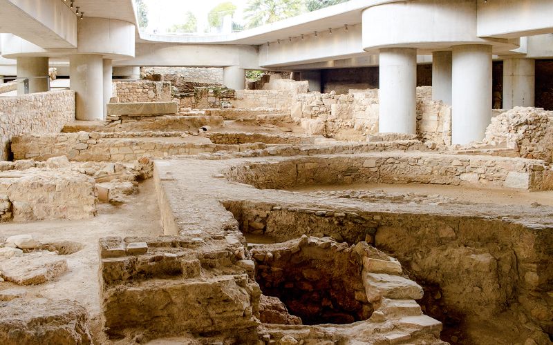 Ce vaste édifice s’appuie sur plus d’une centaine de piliers soigneusement disposés. Ils préservent ainsi un site archéologique exceptionnel, visible sous un plancher de verre. Vous pourrez y admirer les vestiges d’habitations antiques, découverts pendant les fouilles préalables, et comprendre l’histoire urbaine et fascinante qui se cache sous vos pas.