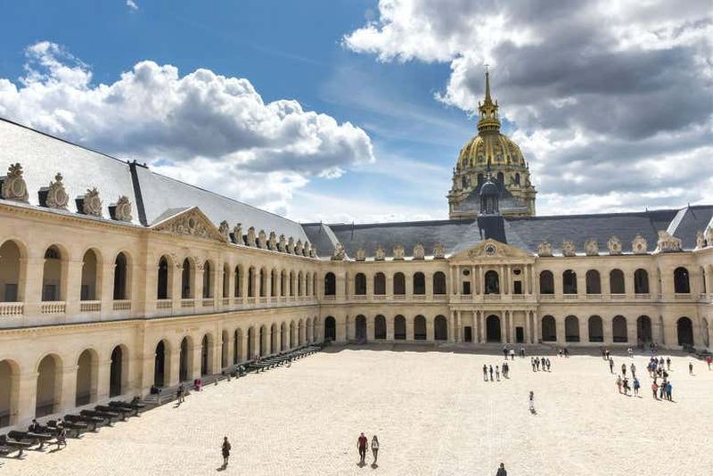 Le célèbre dôme des Invalides, abritant depuis 1861 le tombeau de Napoléon Ier, s’élève fièrement au-dessus de la cour d’honneur. Son architecture a fortement influencé celle du Capitole des États-Unis à Washington. Vous pourrez contempler ses lignes élégantes et vous rendre compte de l’ampleur de l’influence française sur d’autres bâtiments institutionnels à l’étranger.
