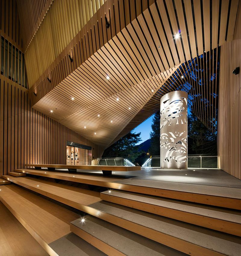 L’architecture contemporaine du Musée d’Art Audain, signée Patkau Architects, se distingue par sa silhouette et son intégration harmonieuse dans le cadre naturel de Whistler. Inauguré en 2016, le bâtiment présente des espaces intérieurs lumineux, grâce à de larges baies vitrées et une conception ouverte permettant de circuler aisément. Les galeries aérées créent un environnement serein, idéal pour admirer les œuvres présentées, tout en profitant de la vue sur la forêt environnante.