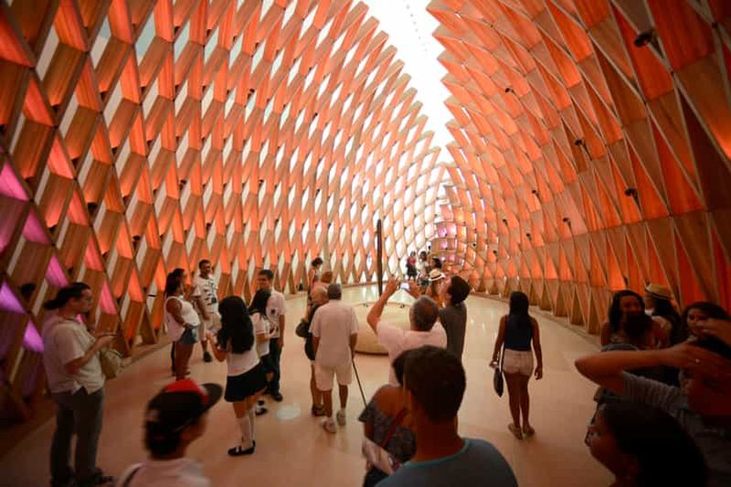 L’architecte espagnol Santiago Calatrava s’est imprégné de la nature brésilienne pour concevoir l’édifice, évoquant la forme des broméliacées et des oiseaux tropicaux. En arpentant les lieux, vous apprécierez l’élégance de ses lignes organiques. L’approche biomorphique de Calatrava reflète sa volonté de rapprocher culture, technologie et environnement, dans un cadre durable.