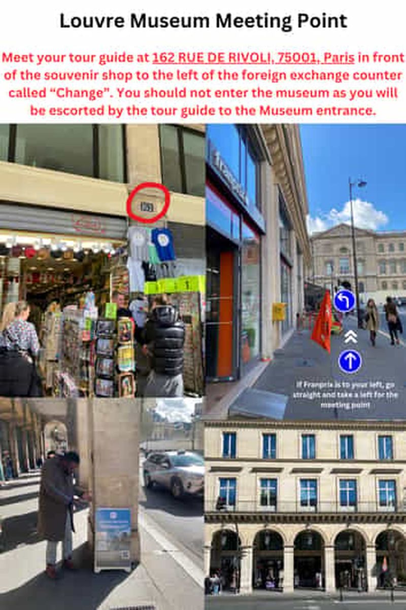 Retrouvez un membre du personnel au lieu de rendez-vous et marchez ensemble jusqu'à l'entrée du Louvre. Votre guide vous fera une brève introduction et vous donnera des conseils pour vous aider à vous orienter dans le musée. Ensuite, entrez et explorez librement à votre rythme, et découvrez la Joconde et d'autres œuvres d'art.