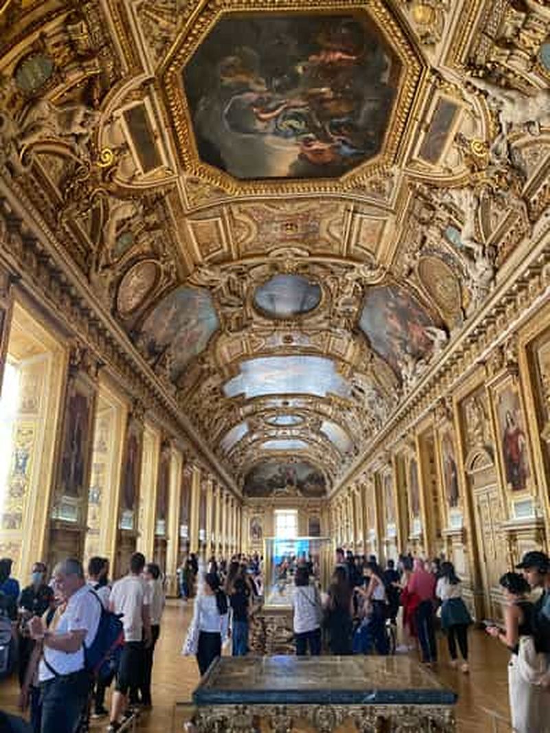 La Galerie d’Apollon, conçue au XVIIe siècle sous Louis XIV, est un chef-d’œuvre de l’art décoratif français. Elle préfigure la Galerie des Glaces de Versailles, avec son plafond peint célébrant la mythologie et la grandeur royale. Ses ors étincelants, ses sculptures et ses peintures murales en font un véritable joyau. Vous pourrez y admirer le trésor de la Couronne, exposé dans des vitrines magnifiquement éclairées, soulignant la splendeur du lieu.
