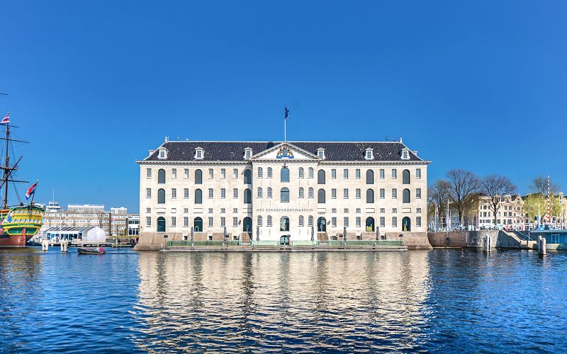 Autrefois un arsenal de la marine, cet édifice fut construit en 1656 sous le règne de l’amiral Michiel de Ruyter par l’architecte Daniël Stalpaert. Son architecture de style classique est typique d’une époque où Amsterdam prospérait grâce à son empire commercial. De larges arches et des murs robustes y témoignent de son rôle stratégique pour l’armée navale. Restauré et repensé pour accueillir le musée, il conserve néanmoins tout le charme authentique de l’Âge d’or.