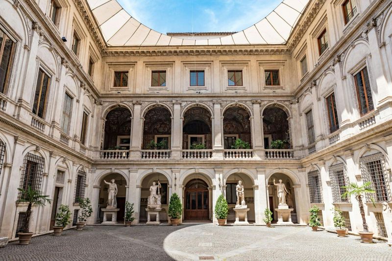 Une vaste cour accueille une exposition de sculptures romaines issues de diverses fouilles urbaines menées à travers les siècles. Bustes impériaux, reliefs narratifs et fragments architecturaux sont présentés selon un principe muséal hérité du XIXe siècle, offrant un espace lumineux propice à la contemplation. Cette disposition permet d’observer l’évolution des styles et des techniques sculptées, de la République à l’Empire tardif, dans un cadre qui favorise la comparaison et la compréhension.