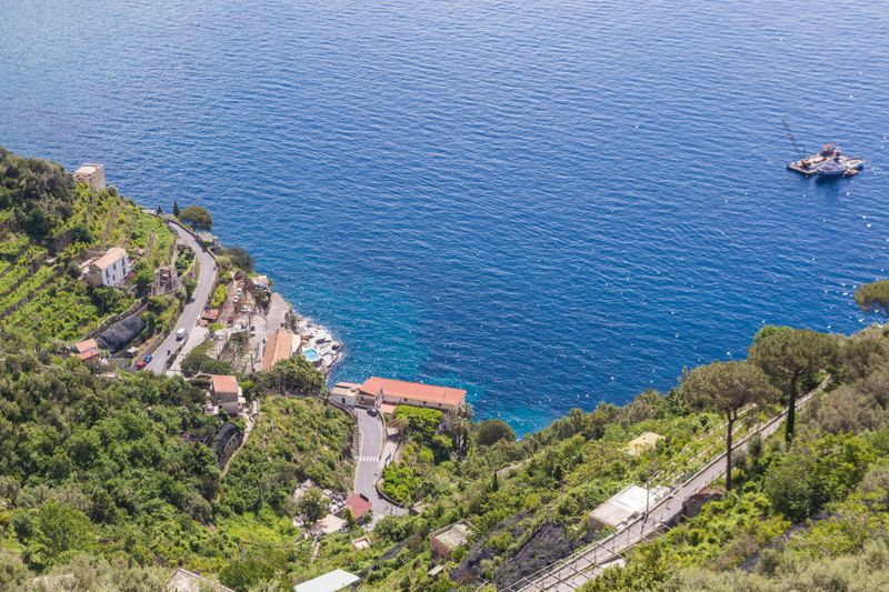 Depuis Beverello, cette croisière longe la côte amalfitaine en passant devant les villages verticaux accrochés aux falaises calcaires, avant d’atteindre Positano puis Amalfi avec 1h à 1h30 d’escale dans chaque port. Compter 90 à 140 euros par personne pour 9 à 10 heures de sortie, souvent avec boissons fraîches et arrêt baignade sous les parois blanches sculptées par la mer, là où seuls les bateaux accèdent. Les repas ne sont pas toujours inclus, mieux vaut vérifier avant.