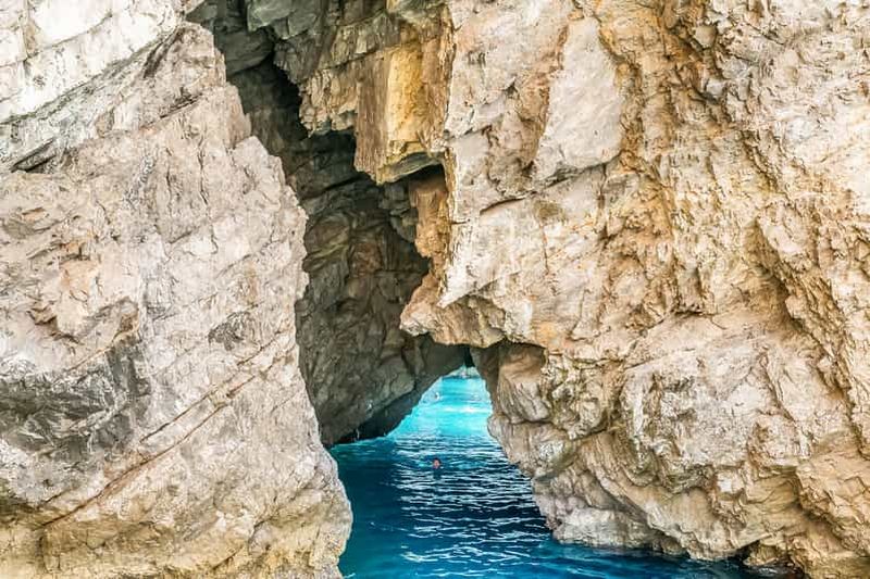 Visite complète de 7 heures sur des bateaux partagés pouvant accueillir jusqu'à 12 personnes, tour de l'île avec arrêts aux sites côtiers les plus remarquables, pause baignade. Arrêt à la Grotte Bleue (si le temps et la mer le permettent) à un moment opportun, lorsque les files d'attente sont moins longues (tôt le matin ou en fin d'après-midi).