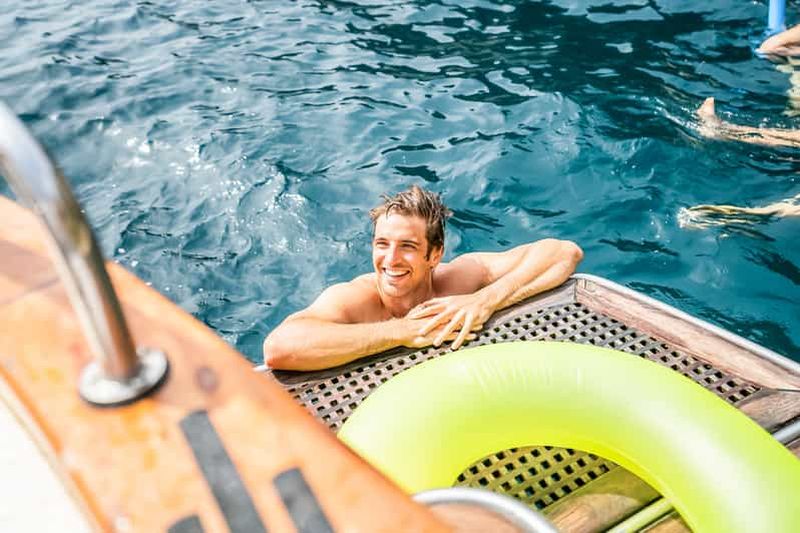 Les semi-rigides de 150 à 250 chevaux prennent 6 à 10 personnes et permettent de rejoindre Procida en 25 à 35 minutes dans de bonnes conditions. Les tarifs varient entre 250 et 400 euros la demi-journée, skipper en option selon le modèle (permis côtier valable en Italie obligatoire sans skipper). Ces bateaux rapides sont parfaits pour maximiser le temps de baignade, avec un départ depuis Mergellina ou le Molo Luise, puis un cap direct vers les criques de Chiaiolella ou Vivara, nettement moins fréquentées que les plages principales de Procida. Le retour offre souvent une vue imprenable sur toute la côte, avec le Vésuve qui change de couleur selon l’heure.