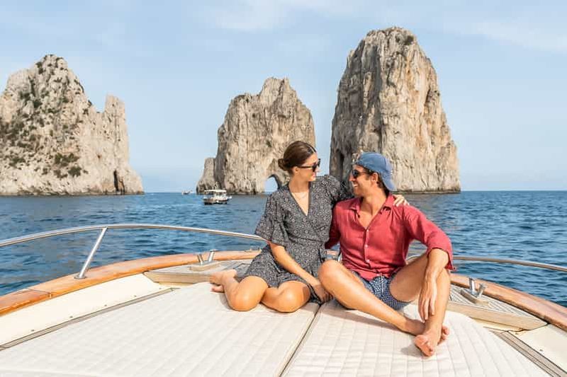 Montez à bord d'un petit bateau et naviguez autour de l'île de Capri pour admirer le paysage côtier et faire du snorkeli...