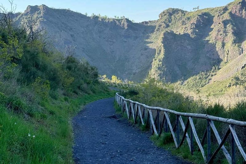 Au sommet, la vue descend sur Pompéi, Torre del Greco et toute la baie jusqu’à Capri. Les gardiens racontent volontiers l’éruption de 1944, dernière colère du géant, dont les coulées noircissent encore le versant est. Le printemps apporte genêts en fleurs et air transparent, bien préférable à la brume estivale qui monte des quartiers côtiers. Par beau temps, on achète le billet sur place sans réservation, sauf en juillet-août où mieux vaut anticiper.