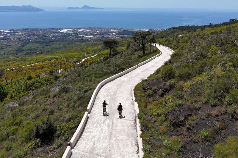 Découvrez le Vésuve à travers une balade à vélo électrique, une occasion unique de pédaler et de flâner le long des sent...
