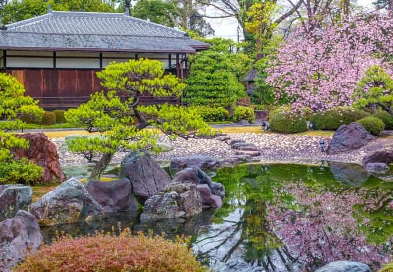 Situé à proximité du Palais Ninomaru, le Jardin Ninomaru est un exemple raffiné de jardin de promenade de l’ère Edo, composé de bassins, de rochers ornementaux et de petits îlots poétiques. Conçu par le maître jardinier Kobori Enshū, il reflète l’esthétique wabi-sabi, privilégiant l’équilibre entre nature et architecture. Les allées sinueuses et les points de vue soigneusement positionnés permettent d’admirer la beauté harmonieusement changeante du paysage au fil des saisons.