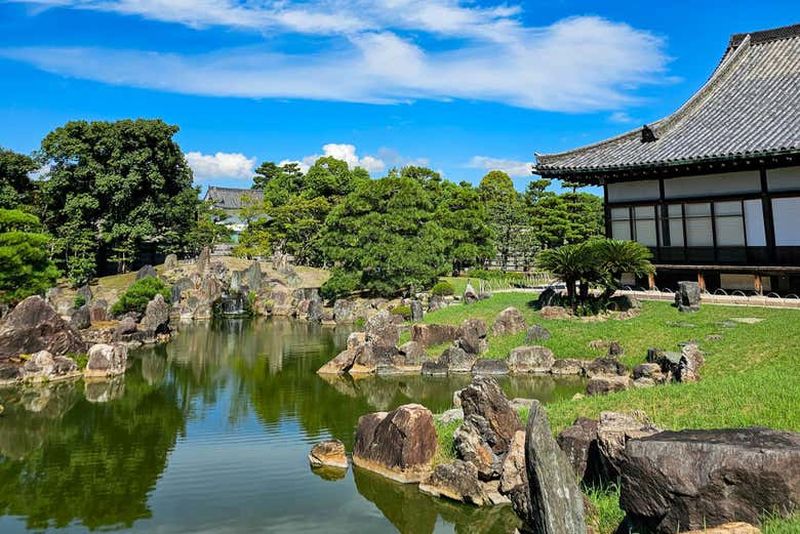 À l’intérieur du palais Ninomaru, vous découvrirez des fusuma, ou cloisons ornées, magnifiquement peintes par les maîtres de l’école Kano. Classées trésors culturels, ces œuvres reflètent l’esthétique raffinée de l’époque Edo. Leur iconographie évoque la puissance du shogun, tout en dévoilant un sens artistique unique propre à cette lignée renommée.
