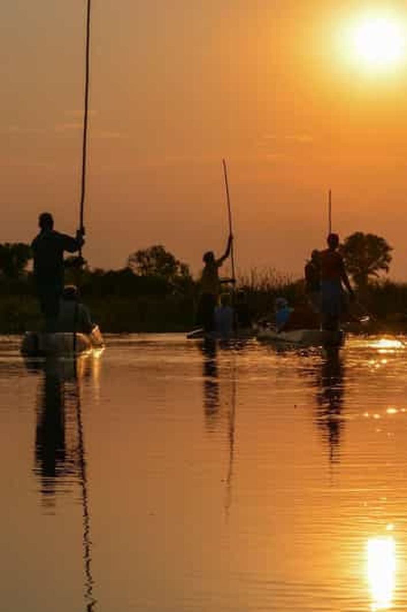 Les peuples locaux naviguent traditionnellement en mokoro, pirogue taillée dans le tronc d’un arbre. Cette embarcation silencieuse sillonne les eaux peu profondes, permettant d’approcher la faune sans la déranger. Emblème culturel fort, le mokoro témoigne du savoir-faire ancestral qui relie intimement les communautés à leur environnement, entre traditions et modernité.