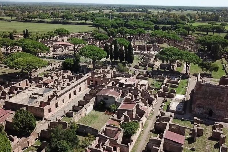 Pour visiter l’ancienne cité romaine d’Ostia Antica, prenez la ligne de train Roma-Lido depuis la station Piramide, située près du centre de Rome. Le trajet dure environ 30 minutes. Ostia Antica se trouve à 25 kilomètres du centre de Rome et à 3 kilomètres du littoral. Depuis la gare d’Ostia Antica, une courte marche de 5 à 10 minutes vous mènera à l’entrée du site. Cette proximité avec Rome et sa côte fait de cette excursion une excellente opportunité pour découvrir la beauté historique italienne tout en restant proche d’autres attractions majeures de la ville éternelle.