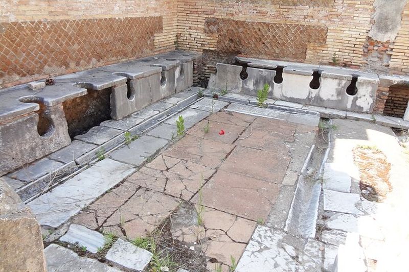 À l’époque romaine, les latrines étaient des toilettes collectives