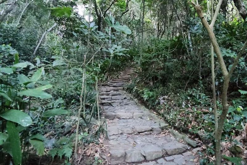 Le sentier de la Piste Cláudio Coutinho, 1,25 km, longe la base du Morro da Urca, offrant une promenade en pleine nature. Inauguré en 1980, il attire joggeurs et familles grâce à son accès facile et à ses points de repos. Les singes et oiseaux tropicaux y sont visibles. Cette piste, sécurisée et bien entretenue, permet d’admirer la végétation luxuriante tout en profitant du bruit des vagues sur la côte.