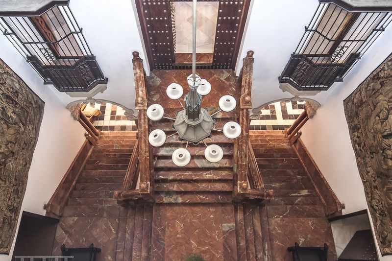 À l’intérieur, vous découvrirez un vestibule somptueux, orné de stucs d’époque qui reflètent le savoir-faire des artisans locaux. Les motifs floraux et les arabesques longent les murs, mettant en valeur la richesse décorative du XVIIIe siècle. L’escalier principal, taillé dans un marbre noble, vous impressionnera par son élégance et son ampleur monumentale. L’ensemble illustre parfaitement le goût raffiné de la famille Domecq et sa position sociale.