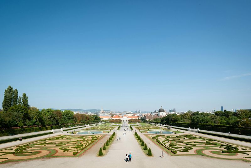 La magnificence du Belvédère se prolonge dans ses jardins, conçus dans un style baroque à la française pour mettre en valeur la symétrie ainsi que le jeu de perspectives. Fontaines, statues allégoriques, parterres fleuris rythment la promenade, offrant un cadre enchanteur pour vous détendre. Ces espaces verts furent conçus non seulement comme un décor ornemental, mais aussi pour souligner le prestige du propriétaire. Vous apprécierez la sérénité imprégnant chaque recoin.