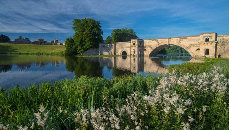La construction audacieuse de John Vanbrugh relie élégamment les berges et dissimule un secret étonnant unique : trente-trois arches, pour la plupart englouties par les eaux. En vous promenant sur ce pont, imaginez l’ingénierie d’époque mobilisée pour relever ce défi architectural, offrant un panorama bucolique sur le vaste domaine environnant.