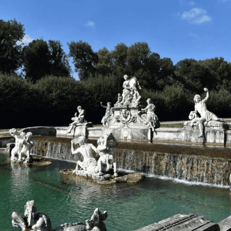 Point d’orgue du parc, la grande cascade se situe à l’extrémité de l’allée principale et constitue un exploit d’ingénierie hydraulique pour l’époque. Alimentée par un aqueduc de 38 kilomètres, cette chute artificielle offre un spectacle, entouré de statues et de rochers ornementaux. Les reines et rois appréciaient s’y promener, profitant de la fraîcheur et des jeux d’eau. Aujourd’hui encore, cette prouesse témoigne du raffinement paysager propre au Palais de Caserte.