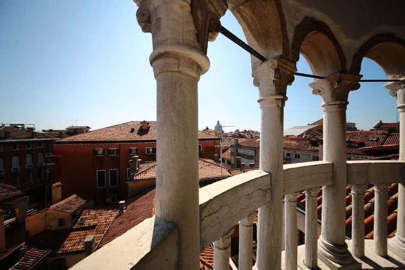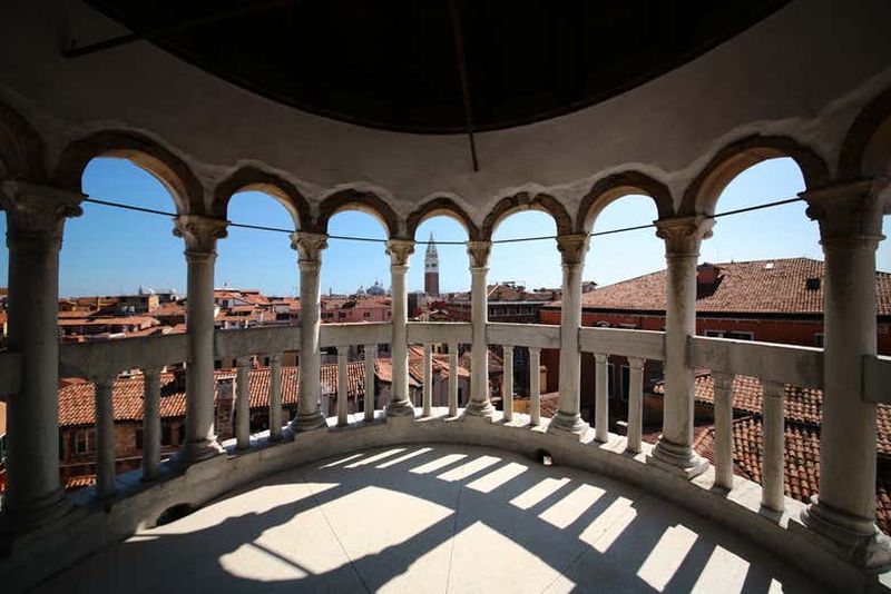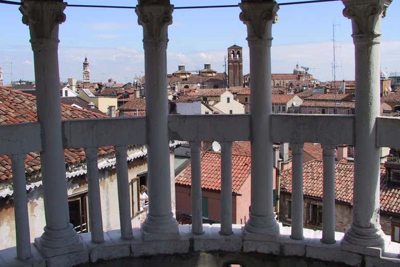 Le belvédère du Palais Contarini del Bovolo, perché au sommet de l’emblématique escalier, offre une vue imprenable sur les toits et clochers de Venise. Conçu pour souligner la prospérité familiale, ce poste d’observation témoigne pleinement de l’ingéniosité architecturale vénitienne. Au lever ou au coucher du soleil, ce panorama unique révèle toute la beauté de la Sérénissime et vous permet à coup sûr d’apprécier son riche patrimoine sous un angle différent.